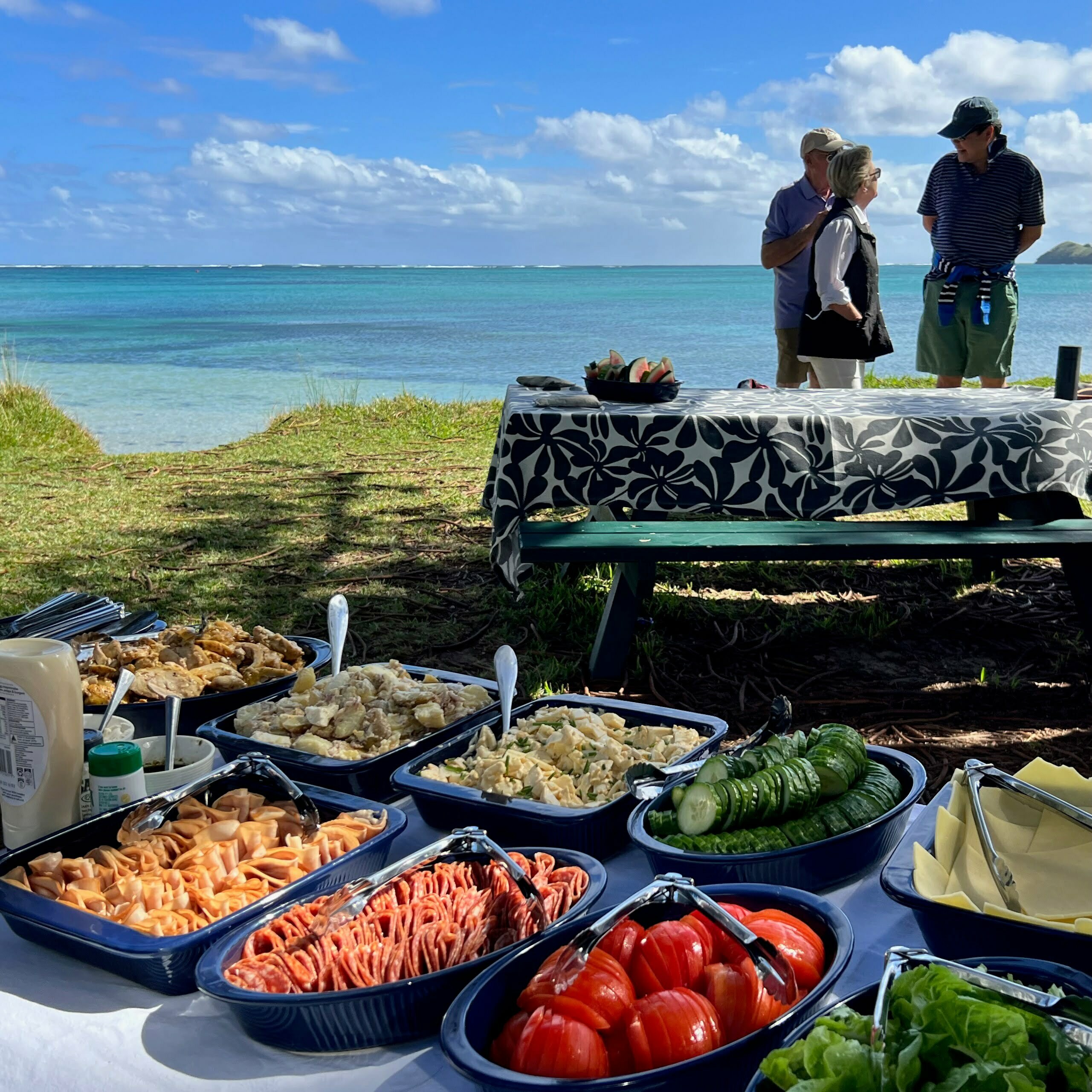 Two ‘Cold Cut’ outdoor lunches. Our ‘Cold Cut’ lunches include: fresh bread (sliced loaves/rolls), various cold toppings, potato salad, fresh fruit, homemade baked goods, iced orange cordial and water, coffee and tea.